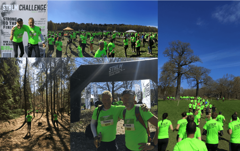 Bland ett hav av gröna tröjor sprang Techno Group i det fantastiska vårvädret STHLM Trail Run del 1 av 4 i STHLM Challange.