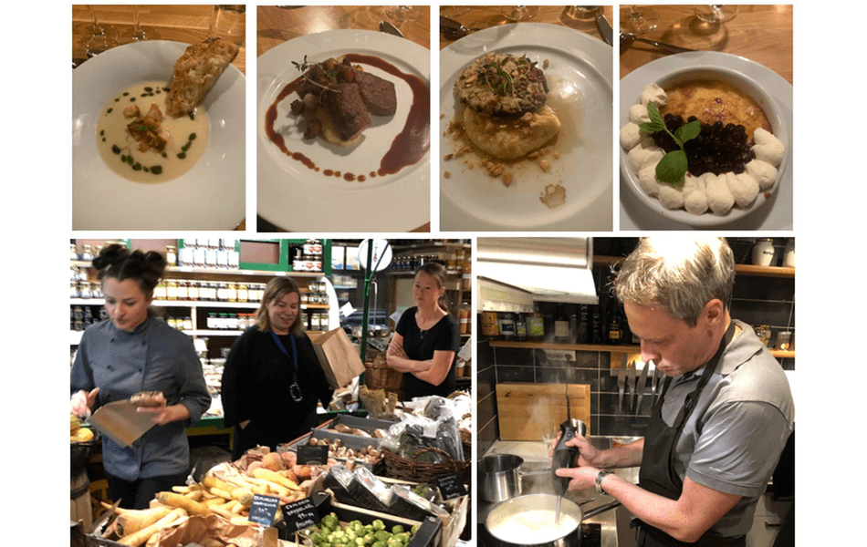 Vi har skapat oss en tradition när vi reser tillsammans, vi har minst en kväll då vi delar in oss i matlag och lagar en trerätters tillsammans. Det har ofta blivit Sillens grymma lasagne, men också Magnus långkokade bolognese. För att få ytterligare inspiration sågs vi en kväll i november och lagade en trerätters på ROT. De tillhandahöll recept, kök, butik plock av råvaror och en duktig tjej som guidade oss genom recepten.